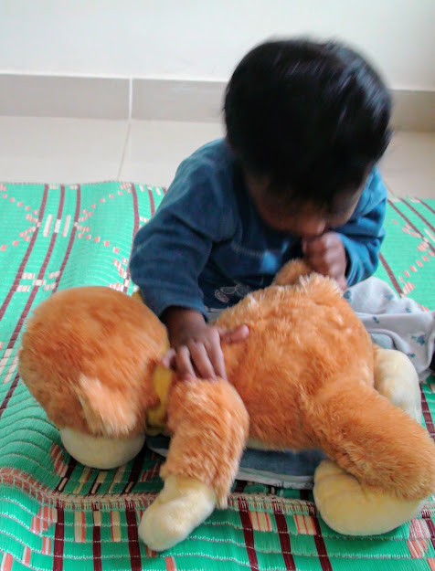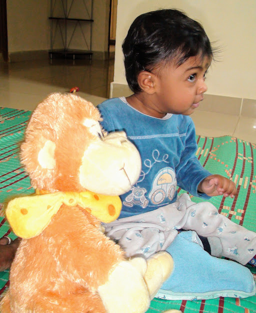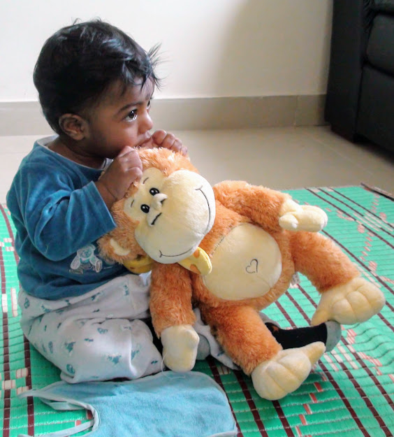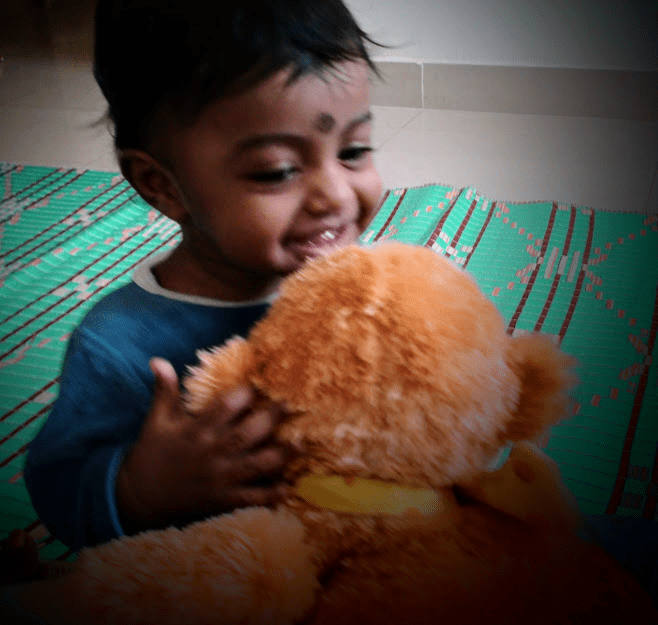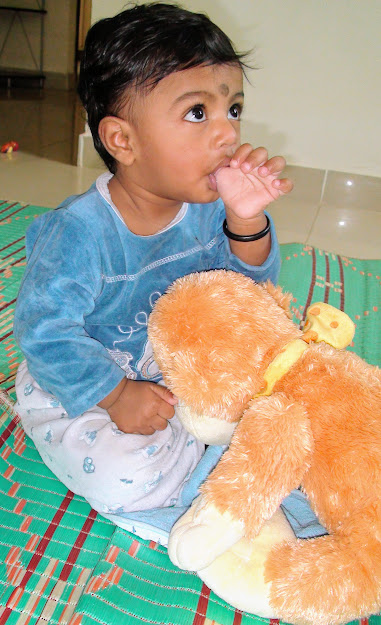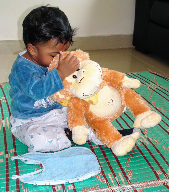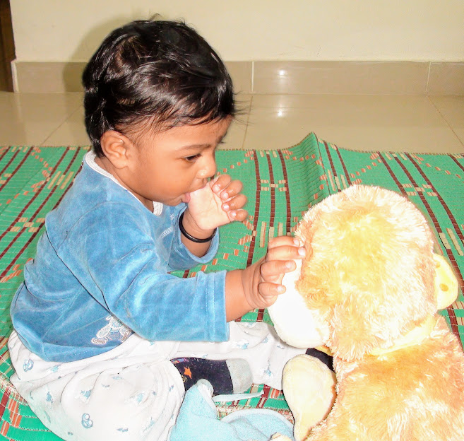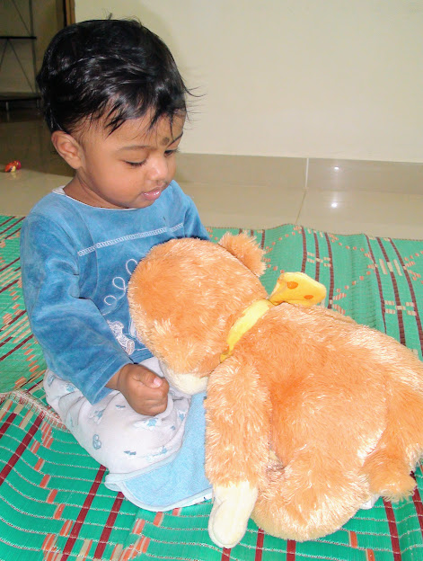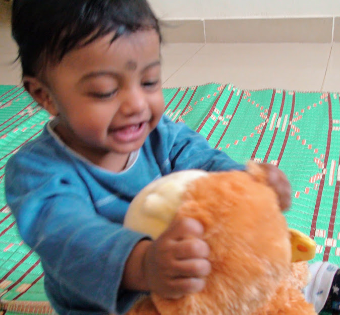 Teddy – Look who has come home…it’s your Papa…..let’s welcome him….heaving a sigh of relief….Dada….save me from your son….he is terrorizing me