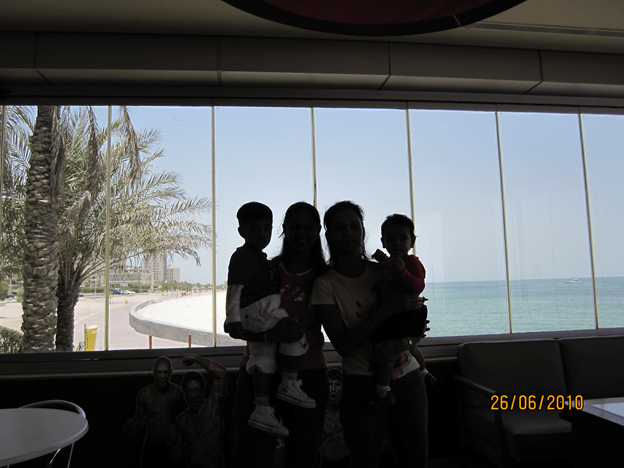 Saturday morning, it should have been a more sober and relaxed morning. However, it was a busy morning schedule for Anirud and of course including his pretty mom. Ani was invited for Narayanan’s birthday party at Salmiya seaside Pizza Hut. And since he cannot manage alone, his Mom was invited to accompany him. It was a kitty only party with some adults as exception. Ritika was also invited and since she is younger than Ani, Kalpana was invited to accompany her. Chintoo, as usual had a new pair of dress to wear. Mom’s wishes for their sons always have to come true. It’s the duty of the Dad to fulfill the same come what may. He wore a green tee embossed with his favorite car and white pants. He looked dashing and freaky. Mom was not far behind as I asked her to wear her pink tee with her 3/4th blue jean. Oh, yeah she did look simply stunning in that outfit.