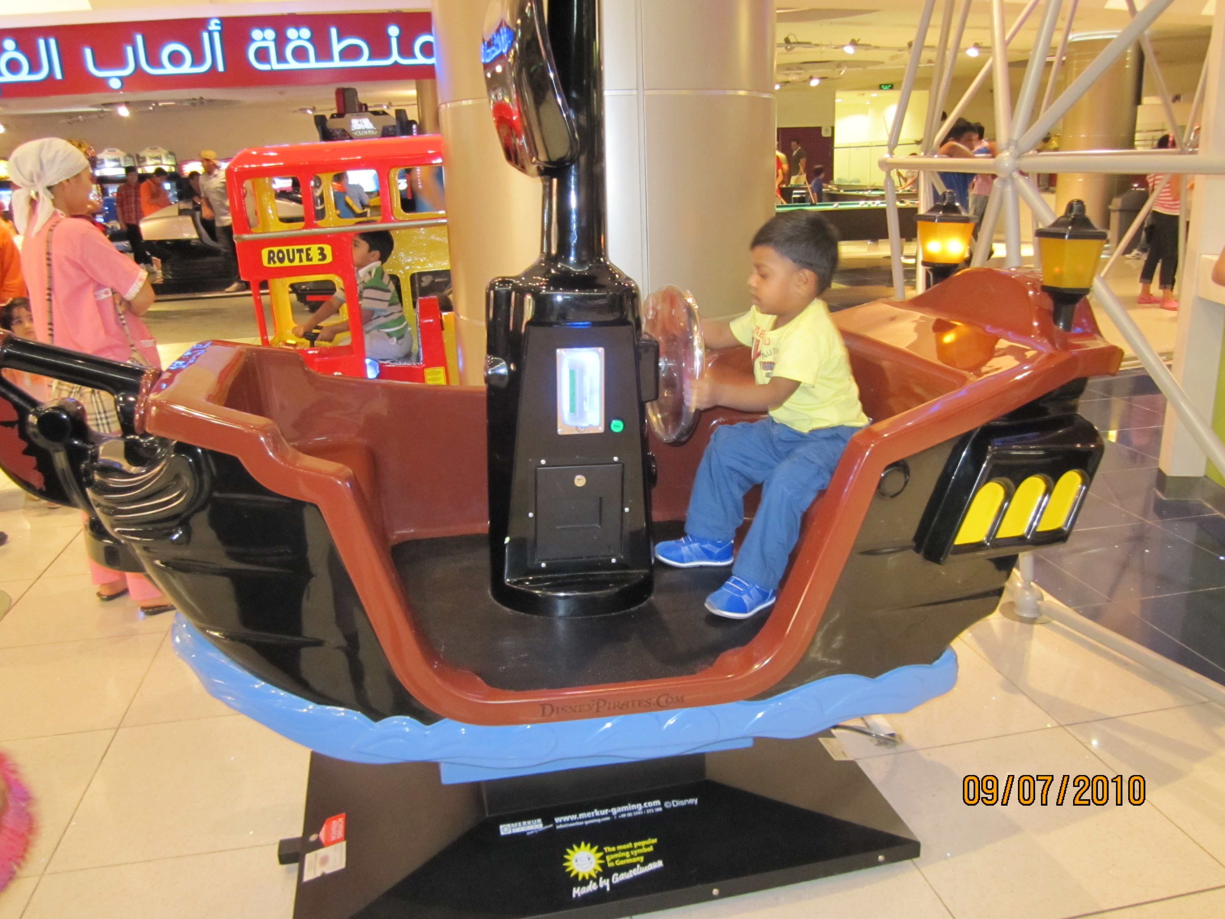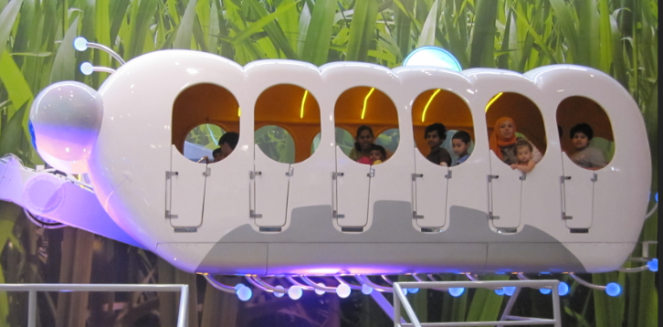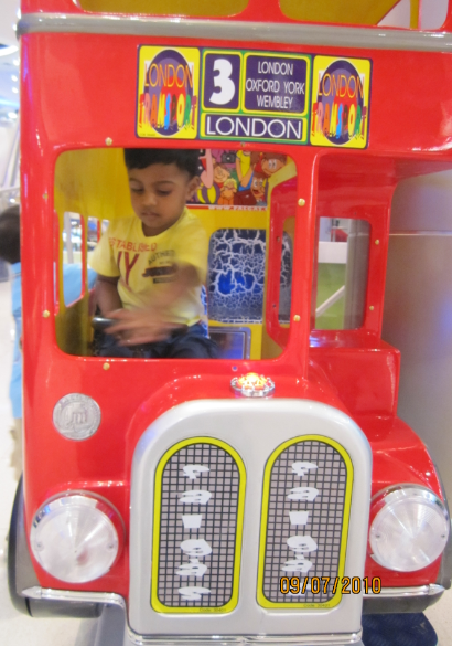 Let me move on, aptly named, magic planet, it sure looks magical and all kids sure had a blast of a time inside. And so did Anirud.  We first made him sit on a van like thing. He started turning the wheel, which is his favorite thing to do these days.  When you swipe the card, the contraption starts rocking, up and down. Now then, our boy got frightened and wanted to jump out. He is quiet and enjoys sitting in these things when it does not rock.