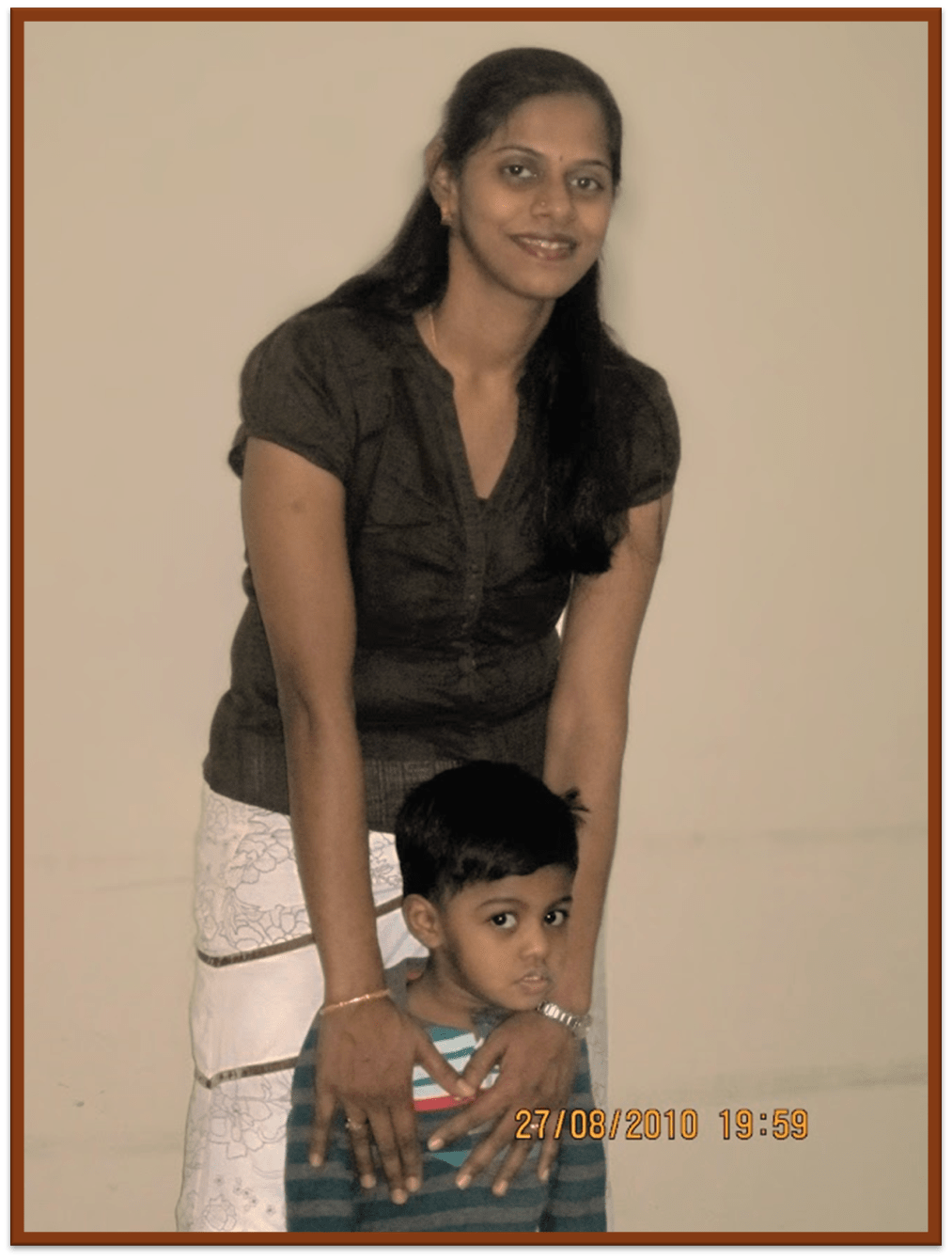 As usual, we went out somewhere in the evening either to a mall or to some restaurant to dine out for the night. Momma looked sensuous in her skirt and top while the boys, including myself wore the usual tees and jeans. He cuddled up to me and gave me some sweet kisses as we posed for the camera. Sweet little child of ours, loving comes naturally to him as fish takes to water…like father…like mother…perhaps it would be appropriate to say the perfect union of us…commingled into one…let’s wait and see how he evolves over a period of time…