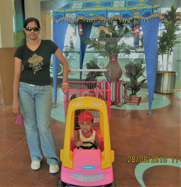 Momma looked in her stylish best wearing her new goggles while our little one was taking a liking to ride the car cum trolley available at the new Hypermarket.