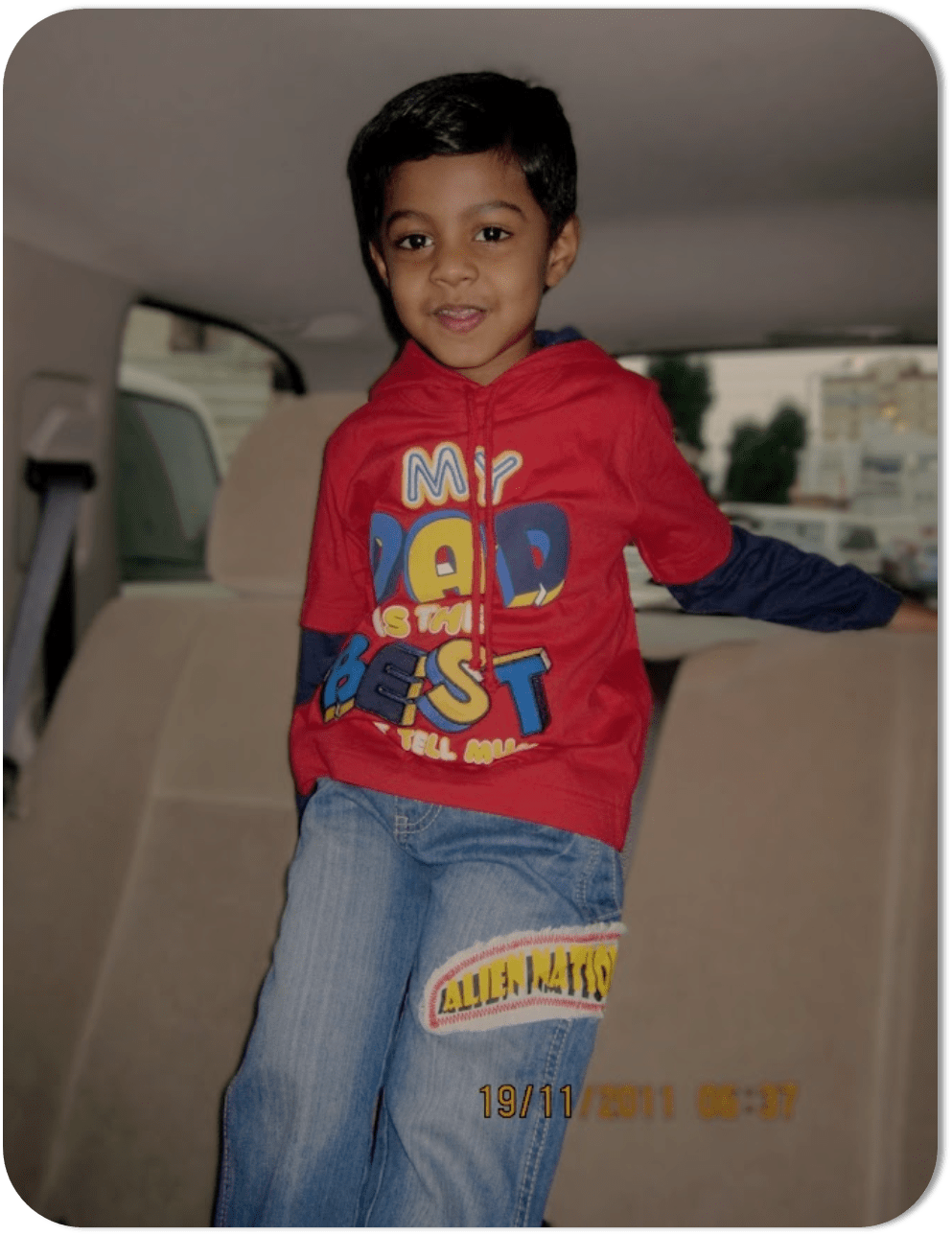 Later the KG section head called the parents for a personal interview. She asked us why the mother was not working and I answered saying that we firmly decided that once the child was born mother should be at home so that she can give her undivided attention to the child. Especially here in Kuwait, since you are away from home (India) living without your parents and relatives, it was important that the child grows with all the love and affection of the parents. When asked how would you react if the child is adamant, we mentioned that we would be strict and not tolerate misbehavior at the same time tell the child that we love him.