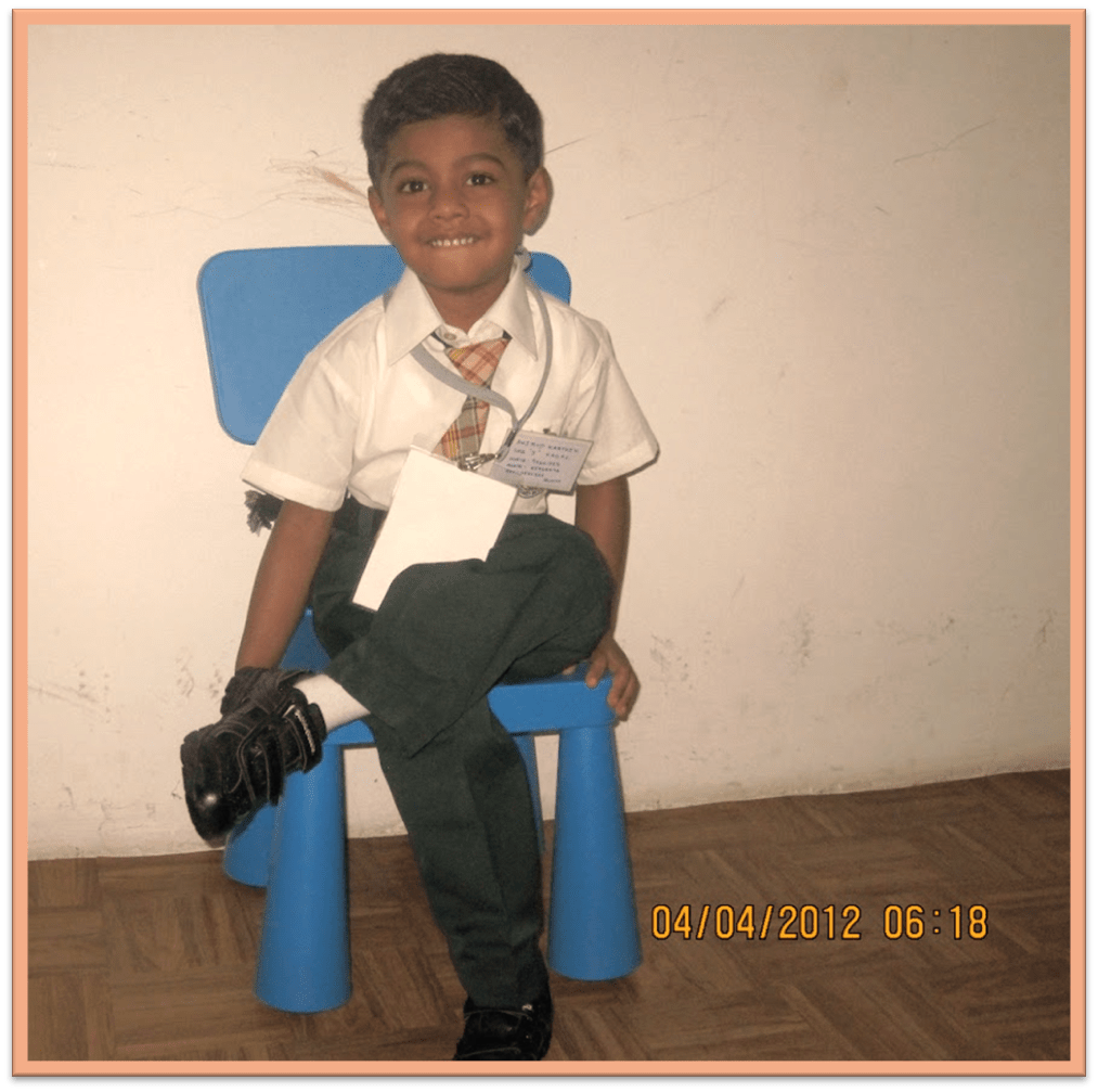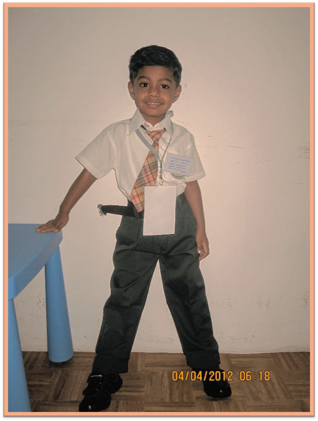 His Mom had a major concern sending him to DPS as it was nearly 60 kms from Salmiya tucked in the middle of the desert near the oil refineries. Even though, it would take only one hour in Kuwait to reach the school, it was quite a distance. Secondly, it would be scorching hot in summer and the school transport bus even though it was air conditioned, given the fact that it gets really hot, it would take time to cool initially. Third, this boy is the finickiest eater in the world. Just to feed him drains her energy completely. He has to leave home by 6.30 AM as the school starts by 8 AM. Once he goes to school, he will return only by 12 noon or so….though she would pack snacks and some food for him, she was not sure if he would eat on his own. All the typical Mom’s worries surfaced in her…..and lastly, hope he would be able to adjust with other kids, weather the weather, distance, school teachers and a completely different atmosphere from that of the playschool where personal attention and care was available in abundance. On the normal days from Sunday to Wednesday, it’s white shirt and green trousers. On Thursday, it’s white cotton tee and green sweat pants. He was looking uber cool in those outfits…wait until you get to see him in the winter outfit with a coat. It was really spell binding indeed.