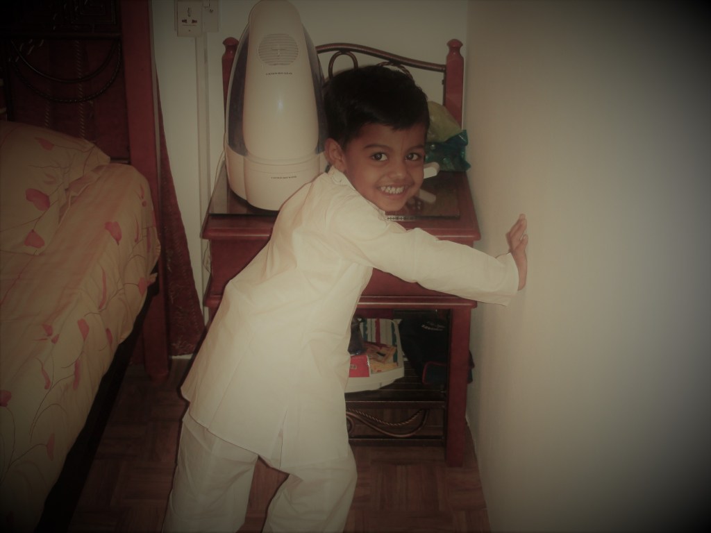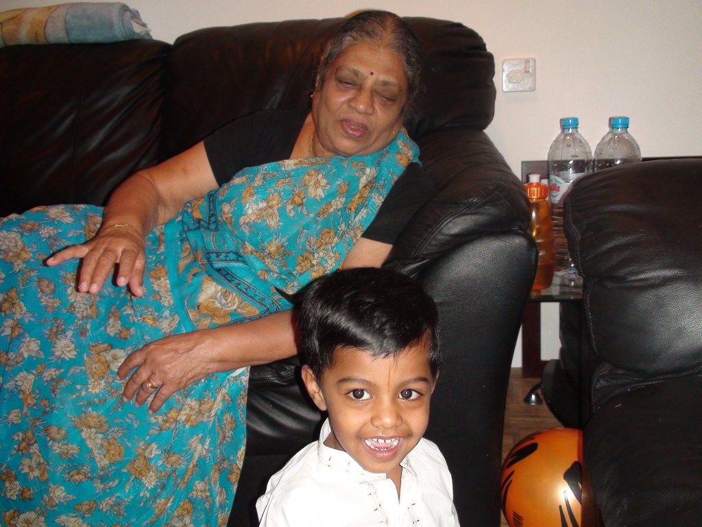Pray to the lord for the well being of all with traditional sweets made out of jaggery…I don’t recall for what reason he is crying….under the watchful eyes of his grand parents