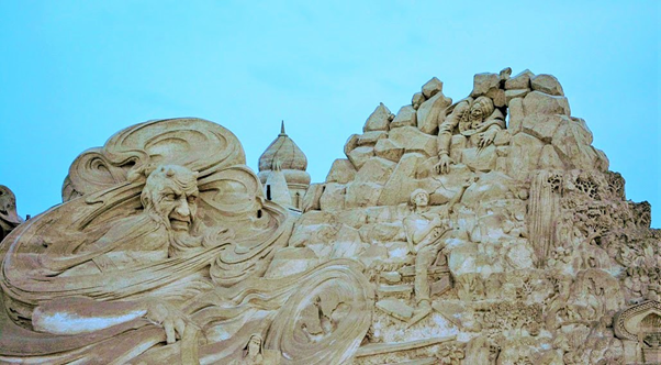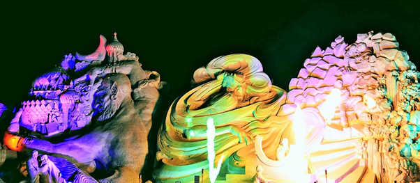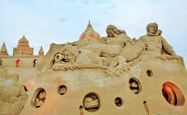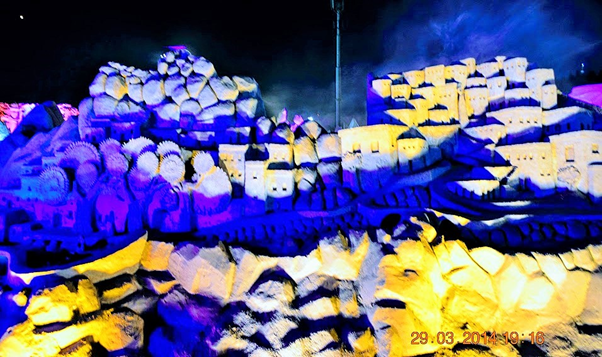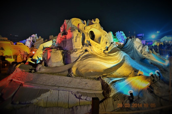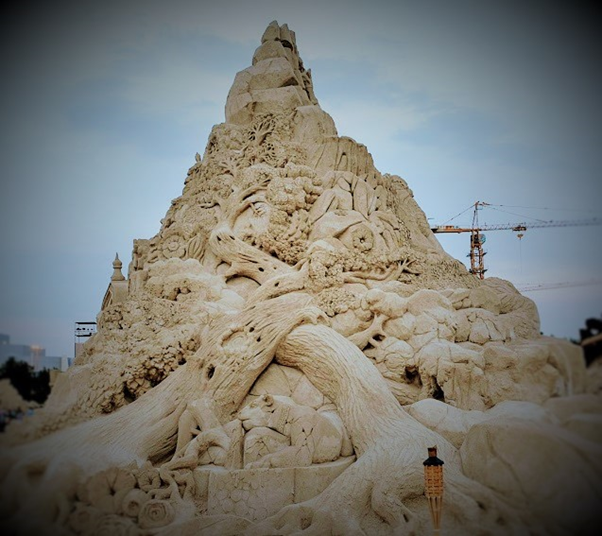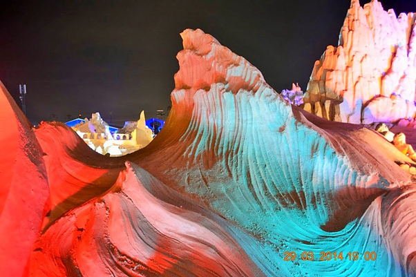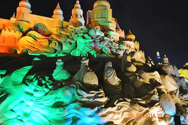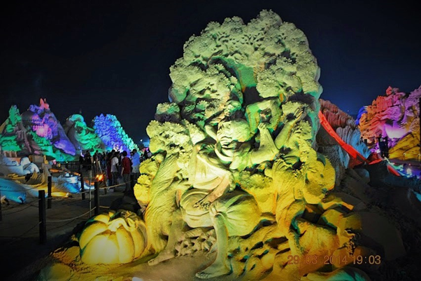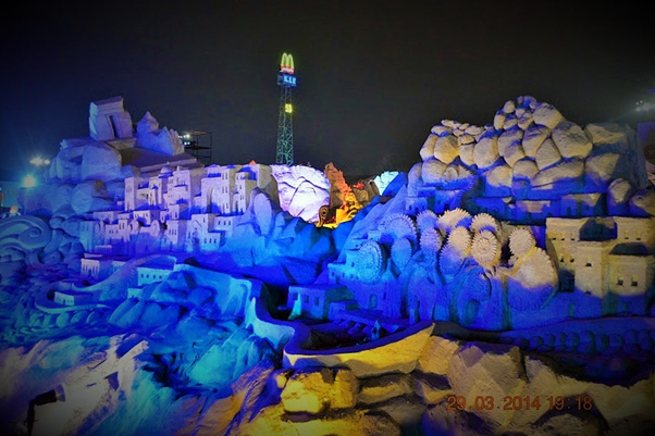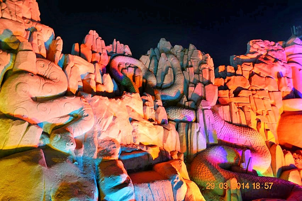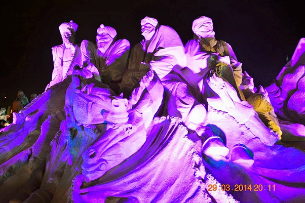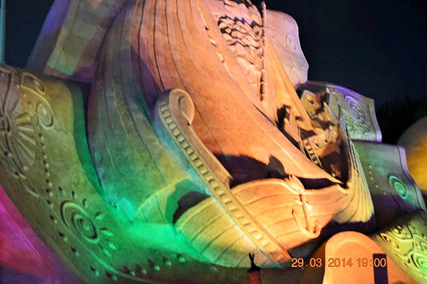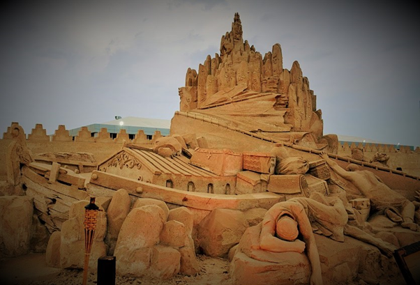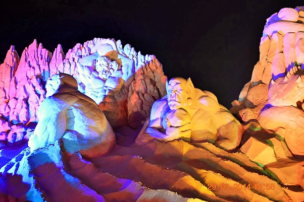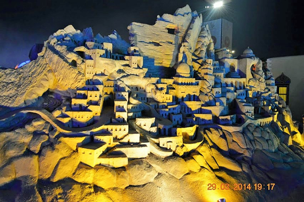 One of the most memorable events that we were fortunate to visit during our brief Kuwait stint was the sand sculptures based on 1001 Arabian nights. It was massive in scale, visually breathtaking, work of ultimate craftsmanship and truly one of a kind and out of the world. It was something not to be missed and truly we were blessed to see it live in action. For those of you who could not see it in real, visualize the grandeur, beauty and magnificence of these sculptures through these photos. You may probably appreciate the stunning and awesome creations even better if you have read the stories and can relate to it…(unfortunately I did not capture those story lines which would have enriched knowledge and pleasure of seeing the story come alive in front of our eyes)…..it’s truly a mind blowing work of art. I cannot even imagine how they could have visualized and created those monstrous sculptures. It must have been phenomenal amount of painstaking effort with such deftness it’s really master class in action. Sheer brilliance, skill and creativity resulting in ingenious work that only a few can do. Rest of us can take pleasure in seeing that lovely piece of imagination and talent in action.