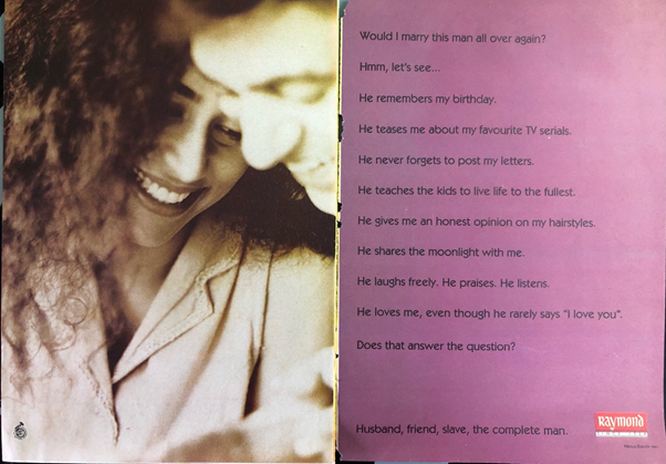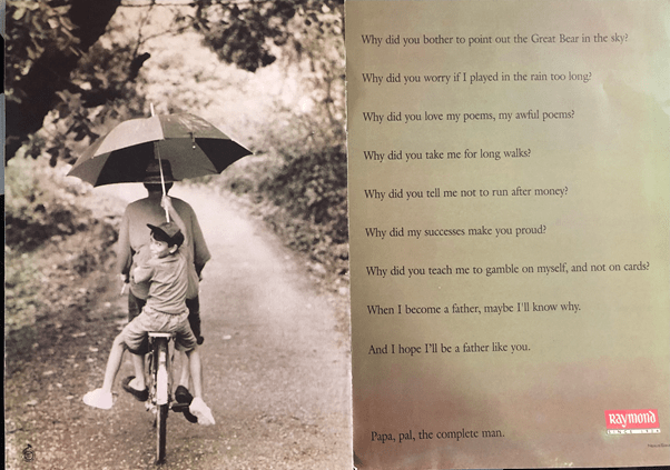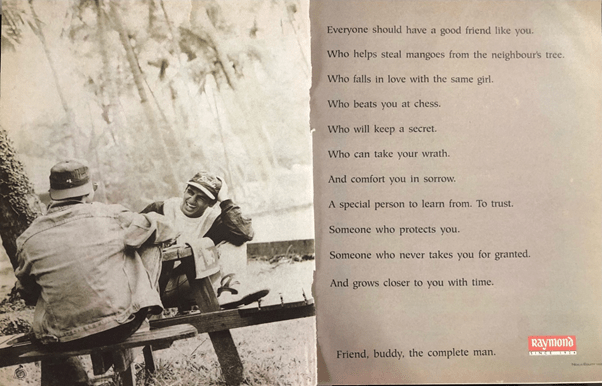 As I reminisce and go back in memory to two and a half decades back in life to those beautiful ads from Raymond, you realize how pertinent they are whatever the timeline be past, present or future. It still remains germane and rooted to the realities of life.