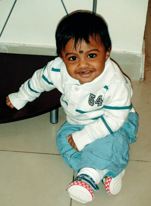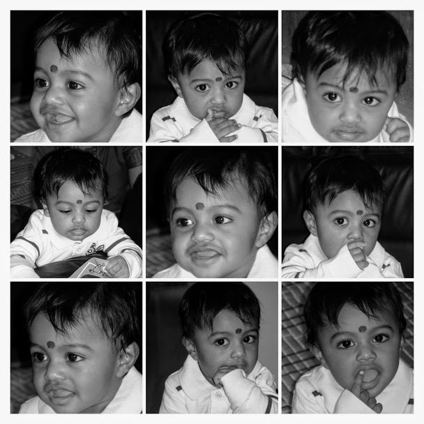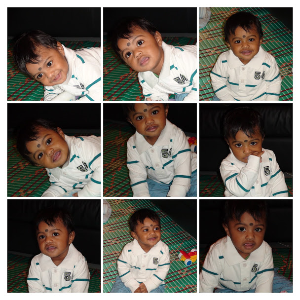 It was time to get ready for his 1st birthday….Invitation card had to be printed and so we set out to click some photos and send it to Vidya’s Mama to be printed in the invitation….this was the one that finally went on the cover of the invitation…. 24th Jan 2009