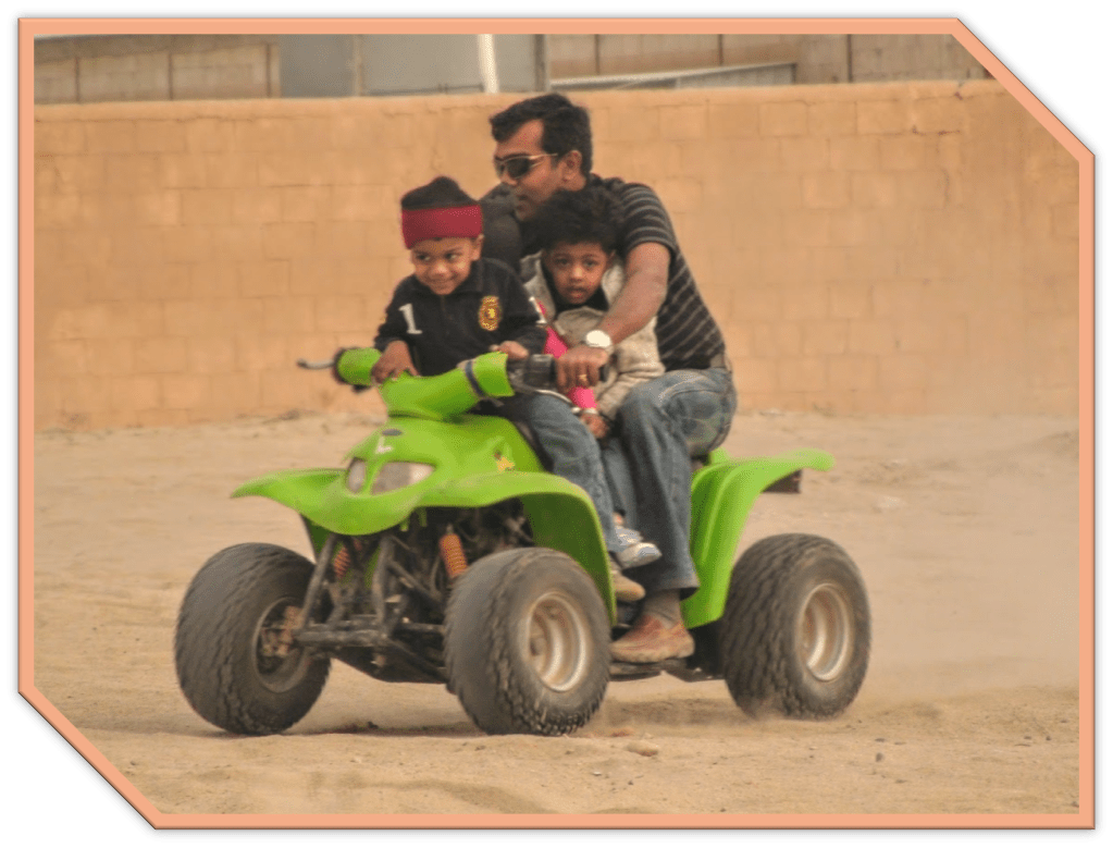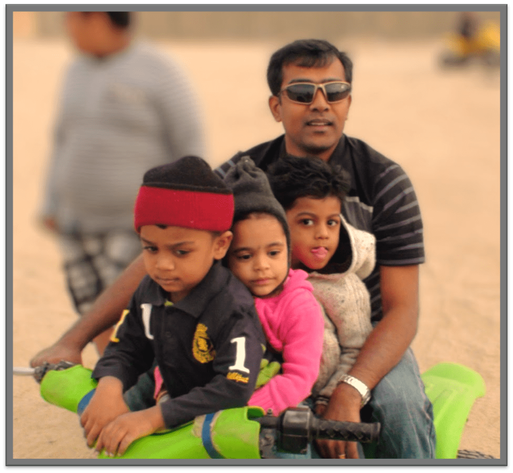 It was the first day of the English New Year; we had returned home early morning after celebrating the dawn of New Year in Ranjini Suresh’s house. And there was a plan to go out Wafra farms. Wafra is an area about 50 plus kilometers from city. It’s primarily desert wherein you would find farm houses owned by Kuwaitis. They also cultivate vegetables over there. In winter people go and stay in the farms apart from the many desert camps / tents that come up during that time. So the 4SA group members decided to go for a long drive and spend some time in the farm house. So we all started around 12 noon and had lunch at Udupi restaurant in Fahaheel. After that we left to the Wafra farms and when we reached there we found that to be locked as holiday was declared for the laborers in the camp as well. Then on the way we found some beach buggies and the kids wanted to go for a joy ride. The kids thoroughly enjoyed the ride and so did Anirud. He went along with Hari and other kids Pranav, Ritika. Then Varshini took all the three kids (Anirud, Pranav and Ritika) with her in the buggy. The kiddo thoroughly enjoyed the outing as ever. Loves the sunshine and wasn’t bothered about the cold, it wasn’t really that cold on that day fortunately. Vidya went for a ride with Ruthwik. Thereafter we left to purchase vegetables in the nearby market where they sell everything in wholesale. Then it was again a long ride back home and everyone had good fun along the way.