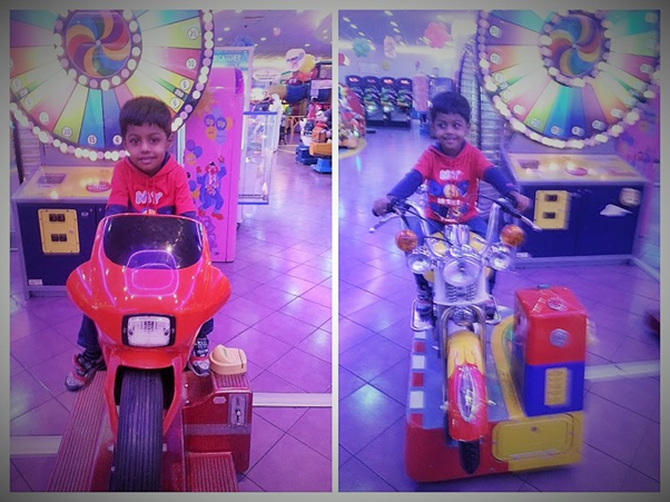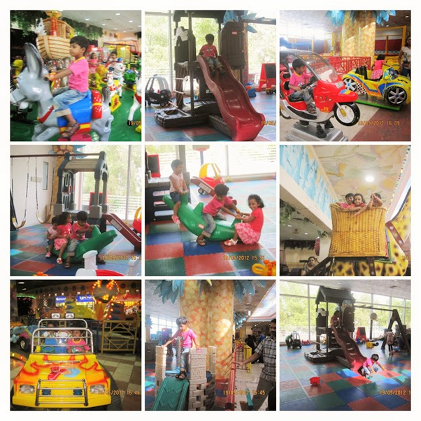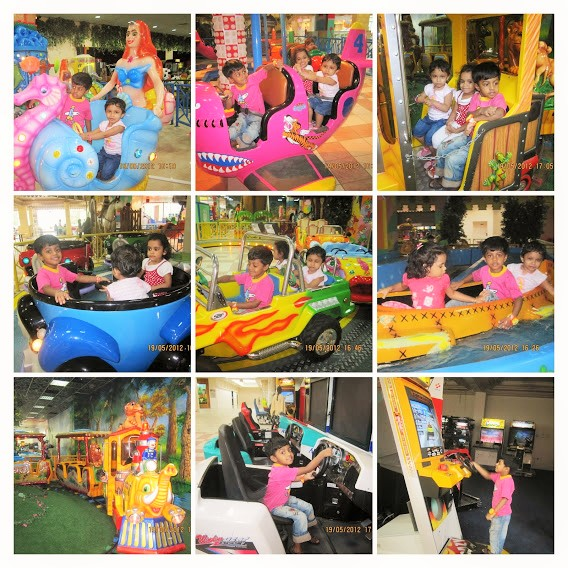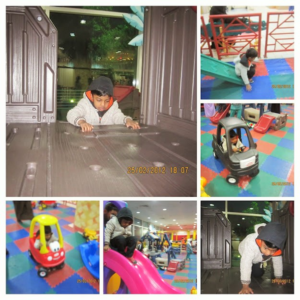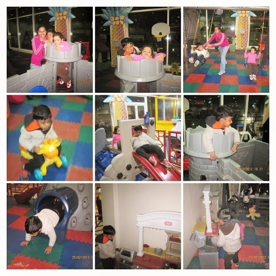 When it’s Hala Feb, it’s time to go out with family and friends. When the kids are around 3-4 years of age, you only have few choices to keep them engaged. Take them to some kind of play area, preferably indoors, as its quite cold even in Feb. So off we went to a mall that had all the games that will keep the kids engaged for an hour or two at least. After they burn their energy, it’s time to go for lunch at some nearby place, again limited choices, as we don’t try different cuisines. We went out with Balu’s family and the kids had a gala time. Mommies get some respite as it’s time for the Dad’s to do their bit…grrr…I can hear Vidya gritting her teeth and seething…you really believe that…at least with me…well…if it wasn’t for me you wouldn’t be seeing these pictures…
