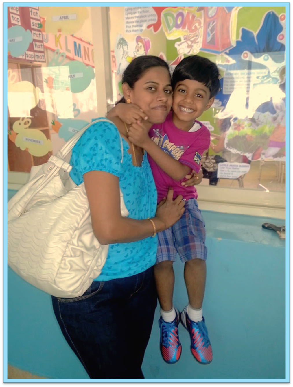 School meet May 18, 2013June 27, 2024 by srikaranirud, posted in 2013 Anirud’s Class and Section The usual rhythmic rhymes A proud Mother and beaming Son It’s nice to see that they are teaching how to hold the pencil for both hands…given that Anirud is a leftie… a peek into Anirud’s classroom…from outside Lovely duo…