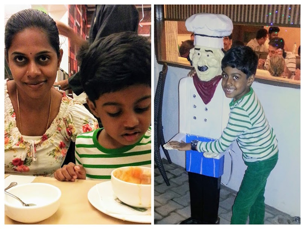 We love Bruschetta Al Pomodoro, Cappelletti Di Brodo Soup, some type of Pasta (only mommy and sonny know), one of those Indian type Pizza without mushrooms and with olives and capsicum, Quesedillas and finally for dessert it’s cream caramel